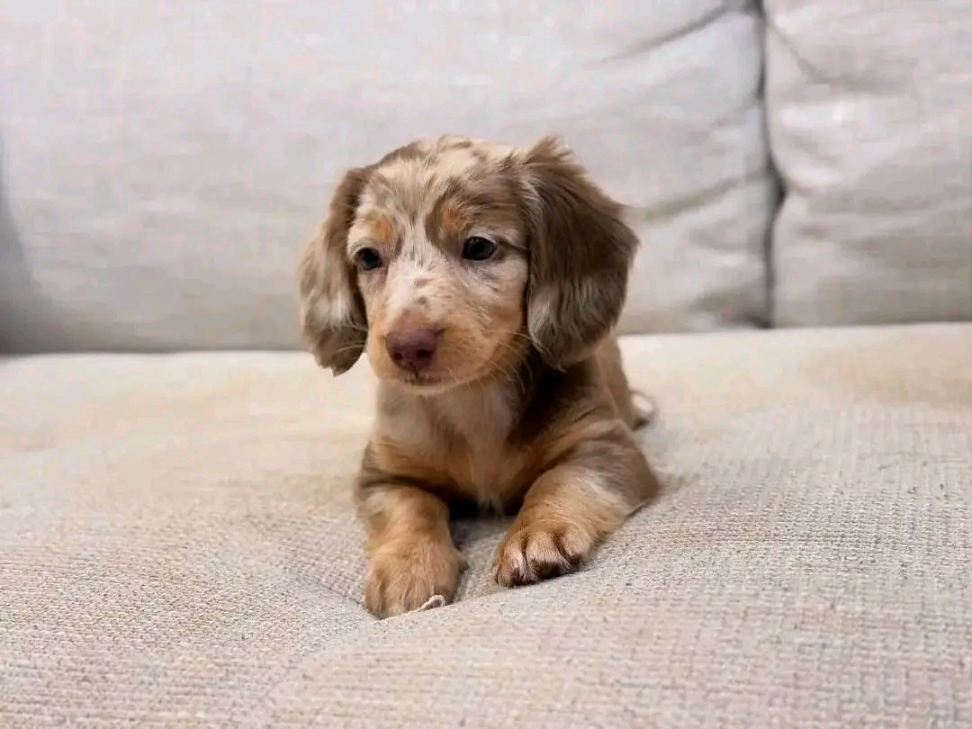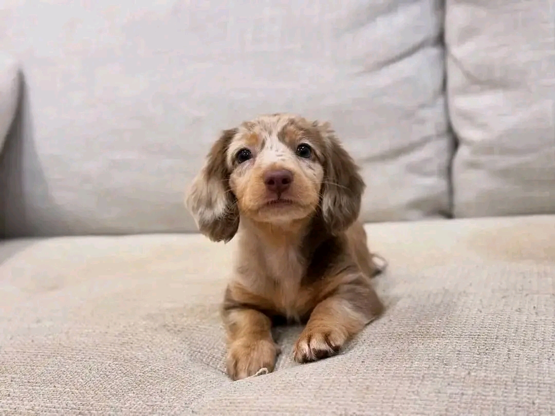 Rocky carries a Red Dachshund presentation with a bright, open visual mood, soft and natural coat definition, and sharp eye focus and confident frame posture. Photo analysis suggests a warm amber tone and playful curiosity and fast bonding instinct, which typically translates into stable engagement with familiar people. At 12 weeks and around 9.6 lbs, Rocky is in a prime window for routine shaping, trust building, and home-environment imprinting. Rocky's profile reinforces this: Calm temperament with affectionate energy. That behavioral pattern is ideal for consistent home bonding. For families seeking a companion with emotional availability and consistent attachment behavior, Rocky reads as a strong long-term match.